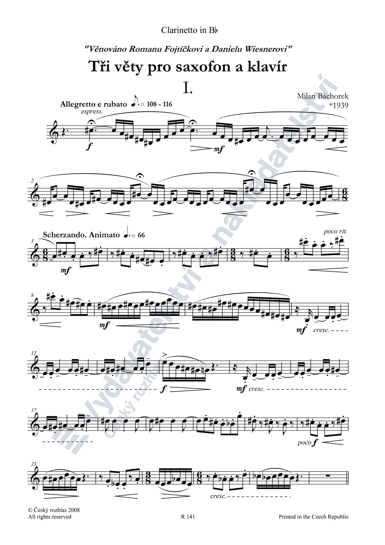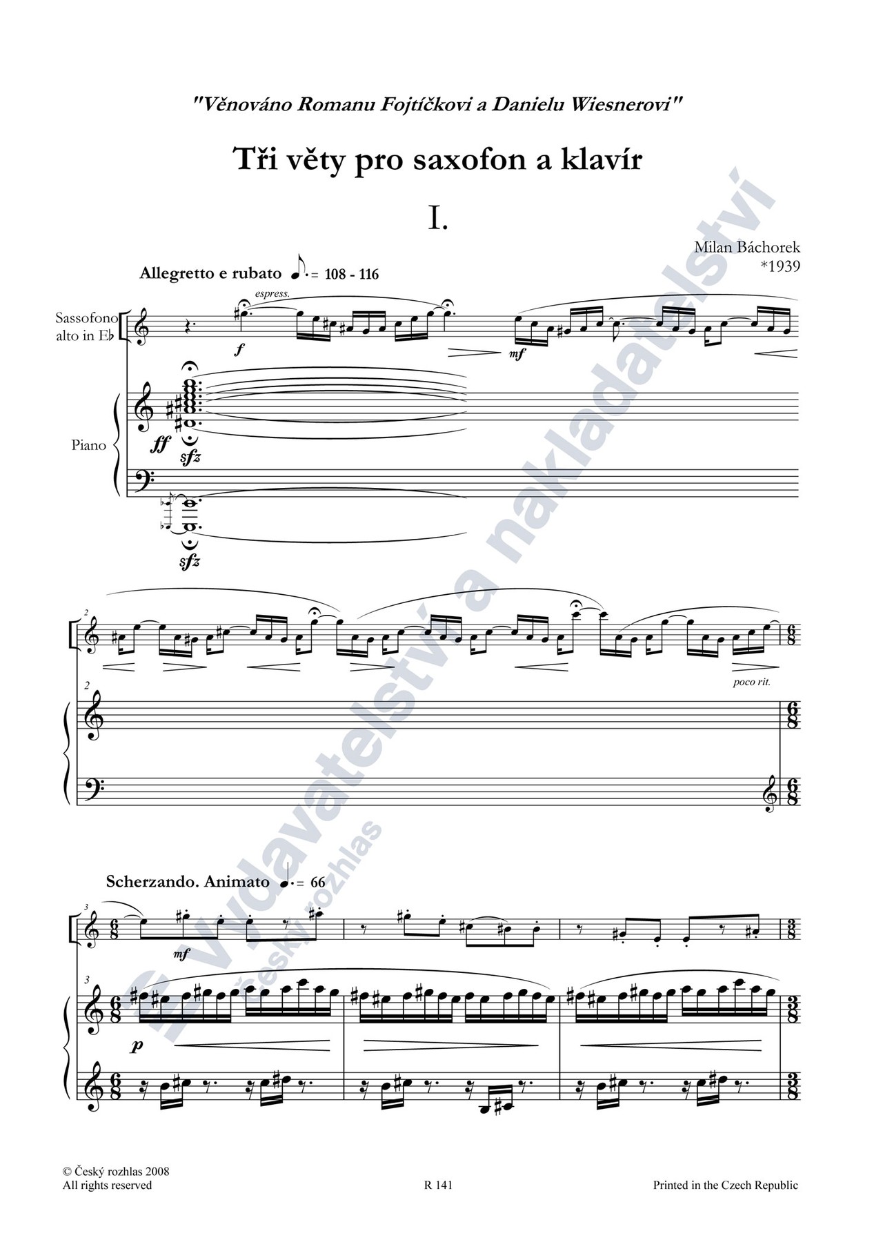 Milan Báchorek: Tři věty pro altový saxofon a klavír