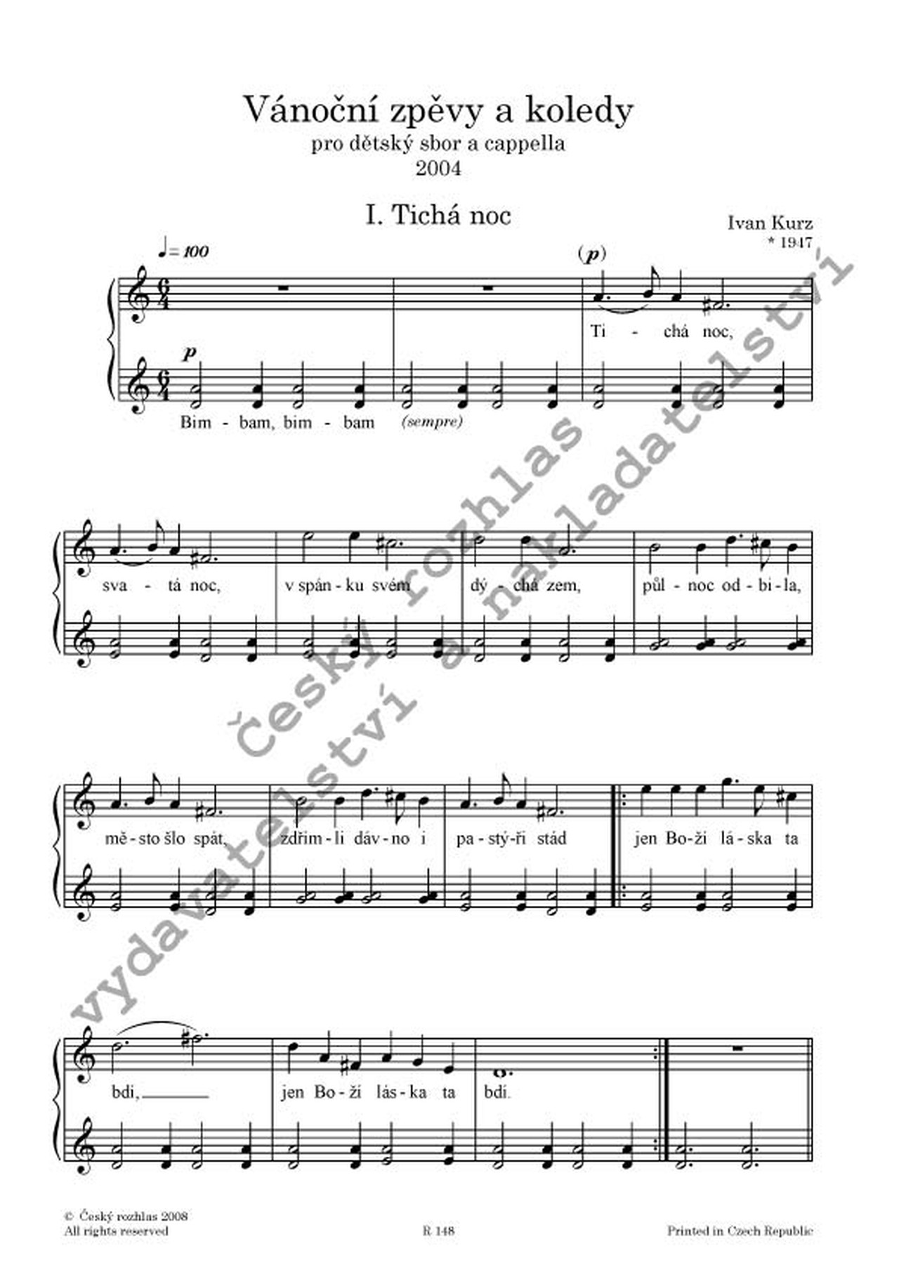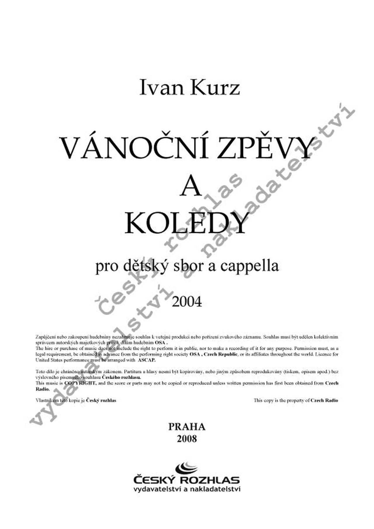 „Úprava Vánočních zpěvů a koled pro dětský sbor a cappella vznikla v roce 2004 na popud sbormistra Kühnova dětského sboru, prof. Jiřího Chvály. Tuto práci provázel v mém nitru pocit velké radosti, vždyť vánoční koledy jsou neopakovatelné svojí hudební čistotou, prostou tématikou, přinášejí zvěst o naději a lásce.“