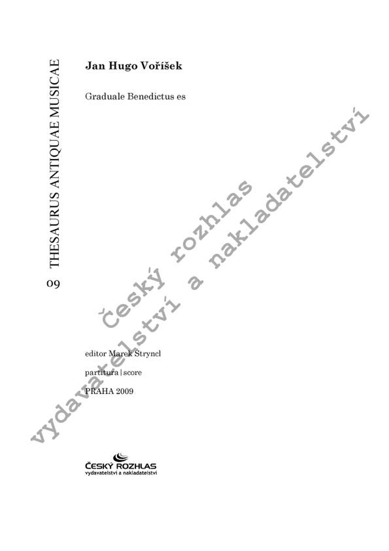 Předlohou vydání graduale Benedictus es Jana Václava Hugo Voříška (1791 – 1825) je rukopisná partitura uložená v Archivních a programových fondech Českého rozhlasu pod signaturou ARCH 431. Autograf byl původně součástí tzv. Ballingovy sbírky s původní signaturou B. S. 420. Graduale Benedictus es je devátým titulem historické řady Thesaurus Antiquae Musicae.