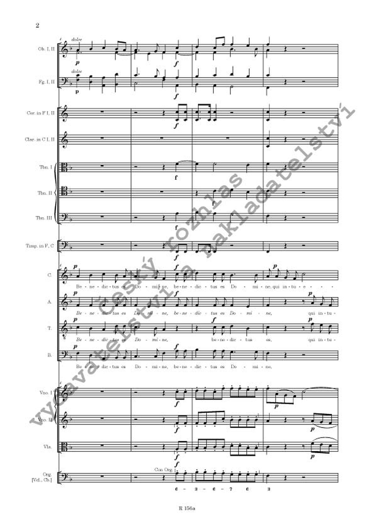 obsazení: S A T B soli, 2ob, 2fg, 2cor in F, 2trb (clarini in C), 2tbn, timp, vno I, vno II, vla, org [vcl, cb]