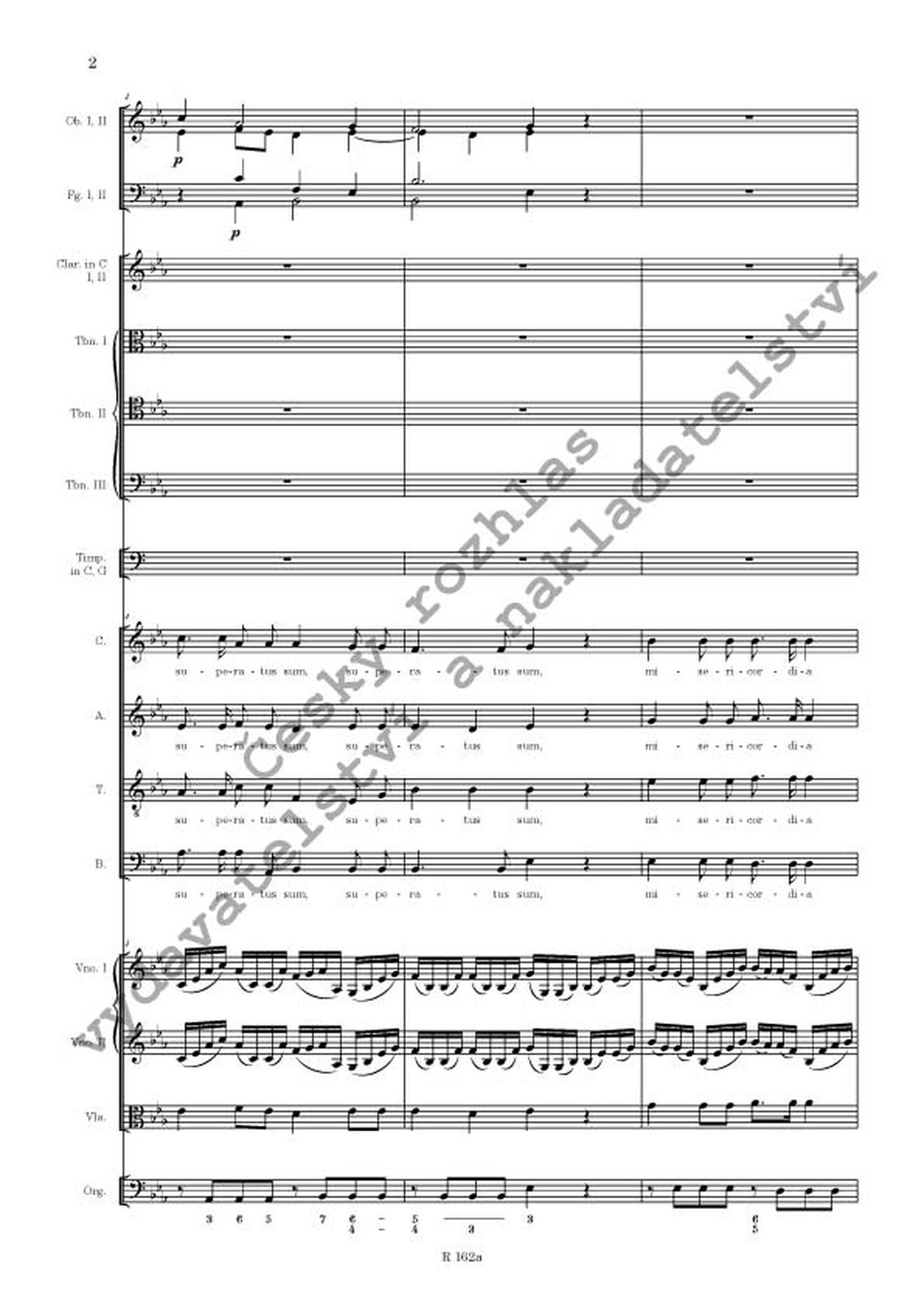 obsazení: S A T B soli, 2ob, 2fg, 2trb (clarini in C), 3tbn, timp, vno I, vno II, vla, org [vcl, cb]