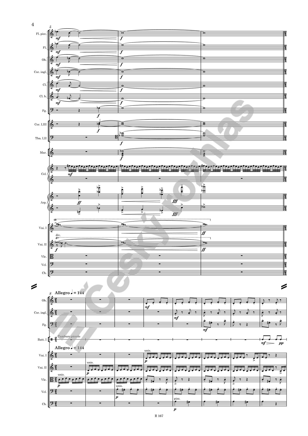 obsazení: arp solo, fl picc, 2fl, 2ob, cor ingl, 2cl, cl b, 2fg, cfg, 4cor, 3trb, 2tbn, tbn b, tb, timp, batt, cel, archi