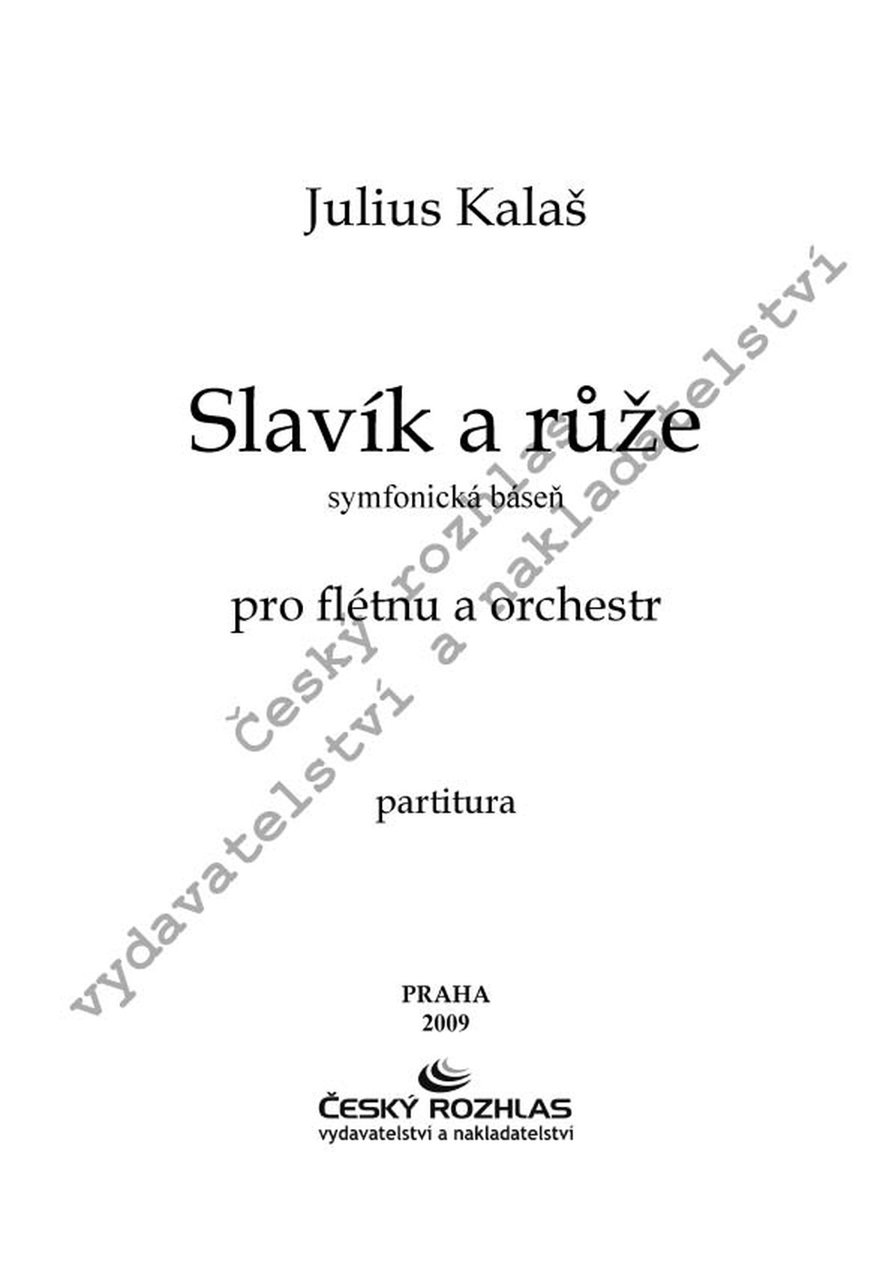 Noty Julius Kalaš: Slavík a růže, symfonická báseň pro flétnu a orchestr