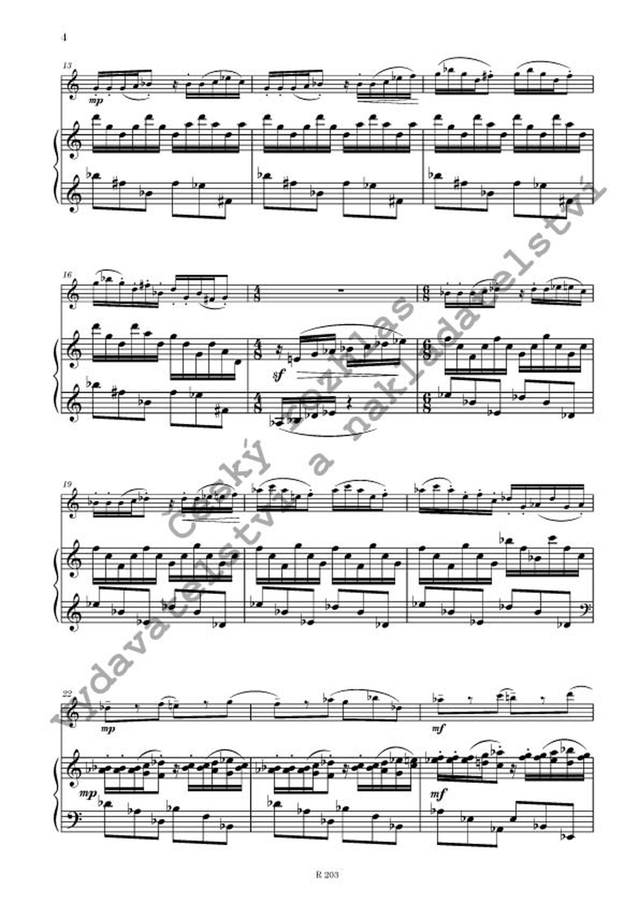 Skladba má klasicky čtyřvětou sonátovou formu. Po volné kadenci první věty přichází kontrastní rytmické téma. Druhá věta, která zachovává formu ABA přináší lyrickou melodii evokující moravský folklor, který tolik inspiroval Novákovo dílo. Kontrast mezi flétnou a klavírem nastoluje třetí věta: prostá flétnová melodie je podložena bohatě rytmizovanou harmonickou fakturou klavírního doprovodu. Naproti tomu rovnocenné partnerství obou nástrojů je slyšitelné ve finální větě se složitější a efektní rytmikou při souhře.