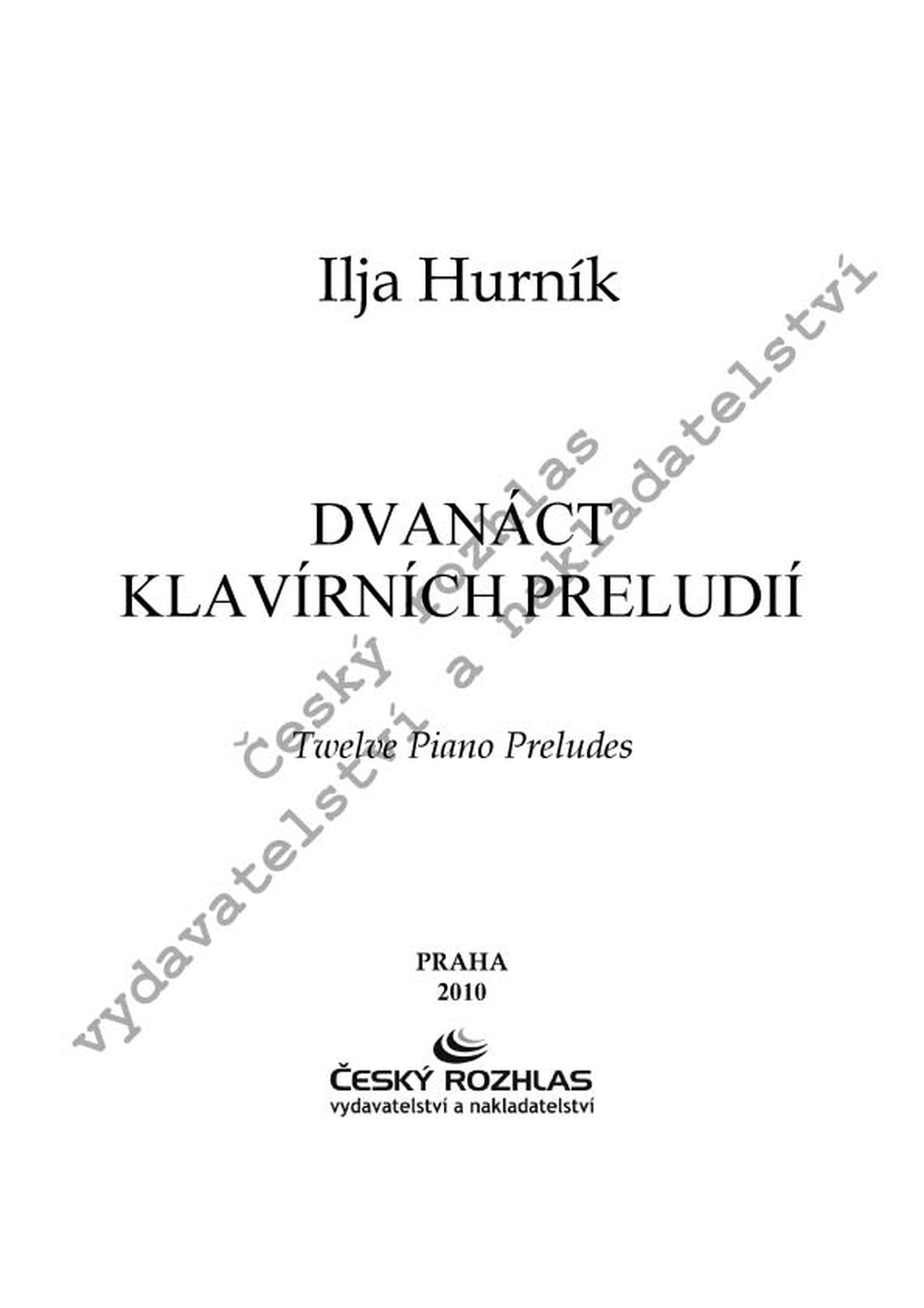 Ve Dvanácti klavírních preludiích autor kombinuje mnoho skladebných prvků: fugatto, volnější preludiové plochy, místy používá ostinátní figury, některé části mají toccatový charakter místy prokládaný arpeggiem. Náladou je každá z dvanácti částí odlišná, ať již modálním charakterem, taneční rozmarností nebo bouřlivou náladou.