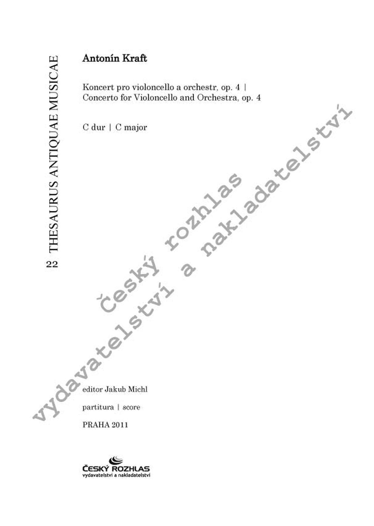 Antonín Kraft (1749–1820) byl považován za jednoho z nejlepších violoncellistů své doby. Jeho první Koncert pro violoncello a orchestr C-dur je čtvrtým opusovým číslem v řadě jeho vydaných skladeb. Předlohou pro vydání Kraftova Violoncellového koncertu C dur, op. 4, který vychází jako dvaadvacátý titul historické řady Thesaurus Antiquae Musicae, byl nedatovaný lipský tisk sólového partu a orchestrálních hlasů, publikovaný vydavatelstvím Breitkopf & Härtel, uložený v Saské knihovně v Drážďanech.