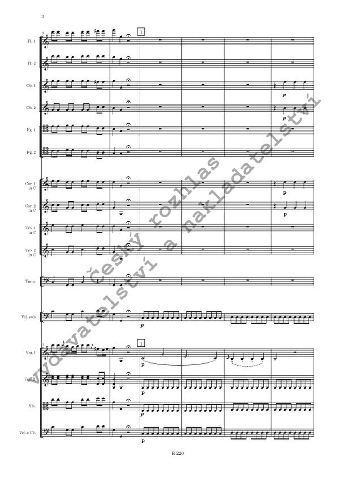 obsazení: 2fl, 2ob, 2fg, 2cor, 2trb, timp, vcl solo, 2vno, vla, vcl, cb