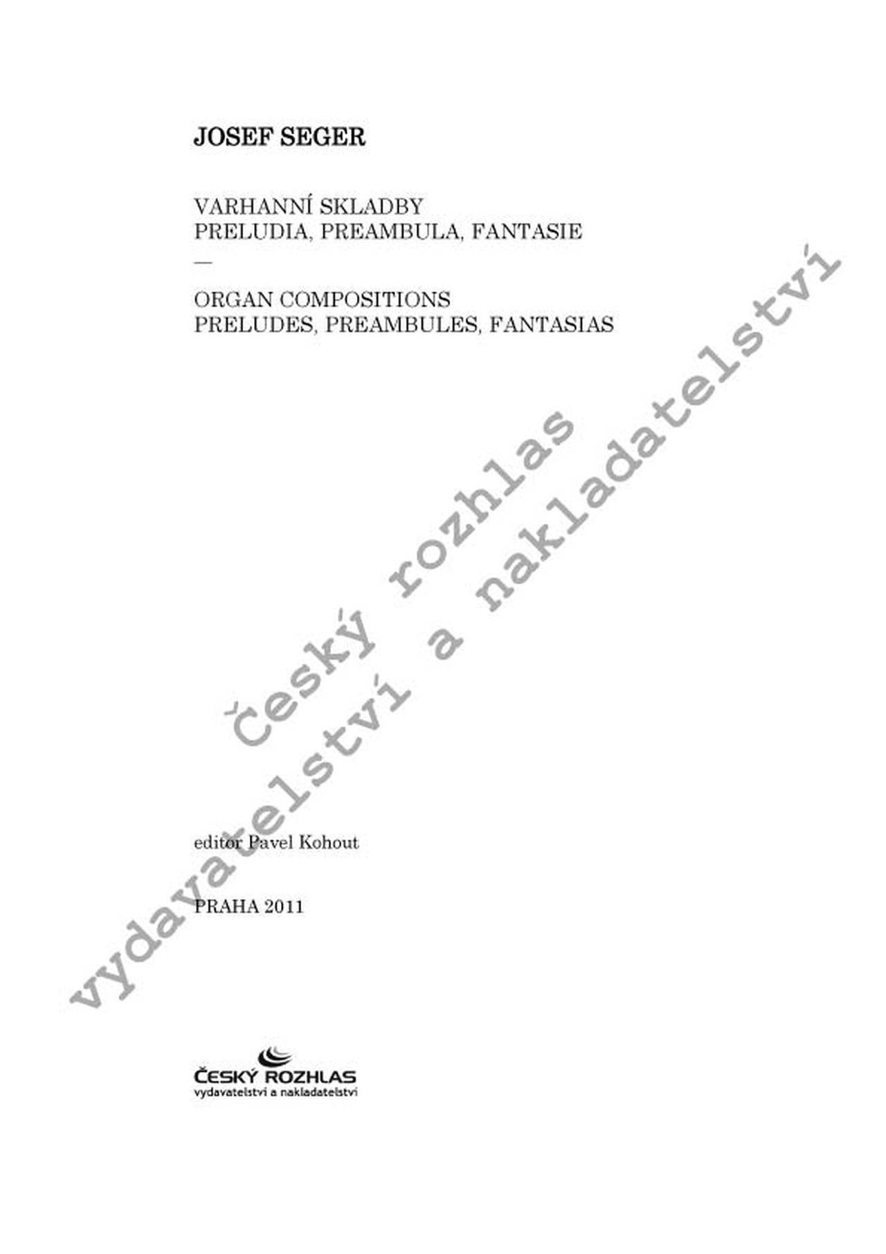 Josef Seger / Pavel Kohout (ed.): Varhanní skladby – Preludia, Preambula, Fantasie