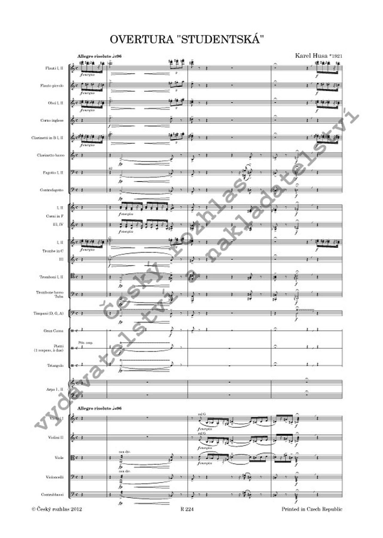 Ačkoli druhá světová válka byla v plném proudu, já jsem byl šťastný, že jsem našel v hudbě – a hlavně v komponování - svůj životní cíl. Myslím, že Overtura je radostná a optimistická stejně, jako byla i má studentská léta.“ Karel Husa