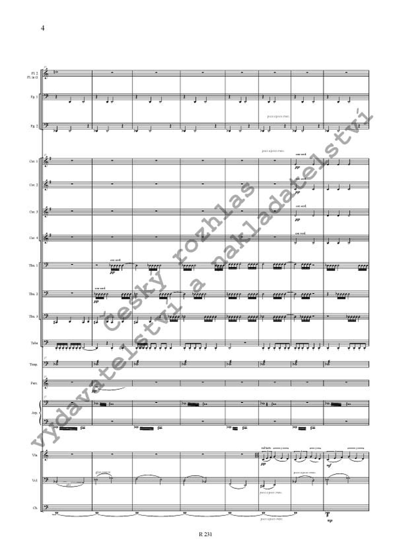 obsazení: voc puerile, picc, 2fl/fl alto in G, 2ob, ci, 2cl, 2fg, 4cor, 4trp, 3trb, tb, tymp, 7perc, arp, archi