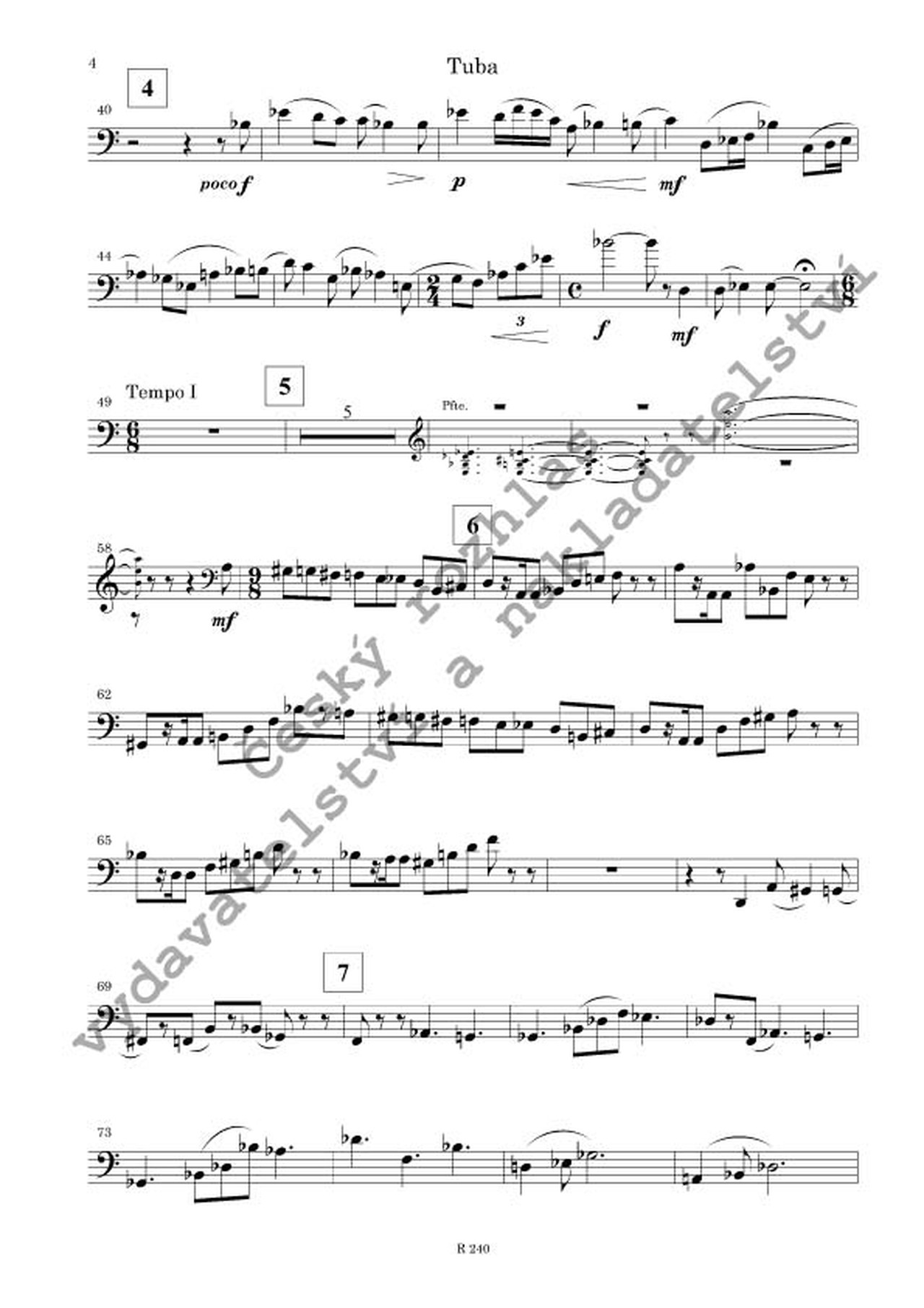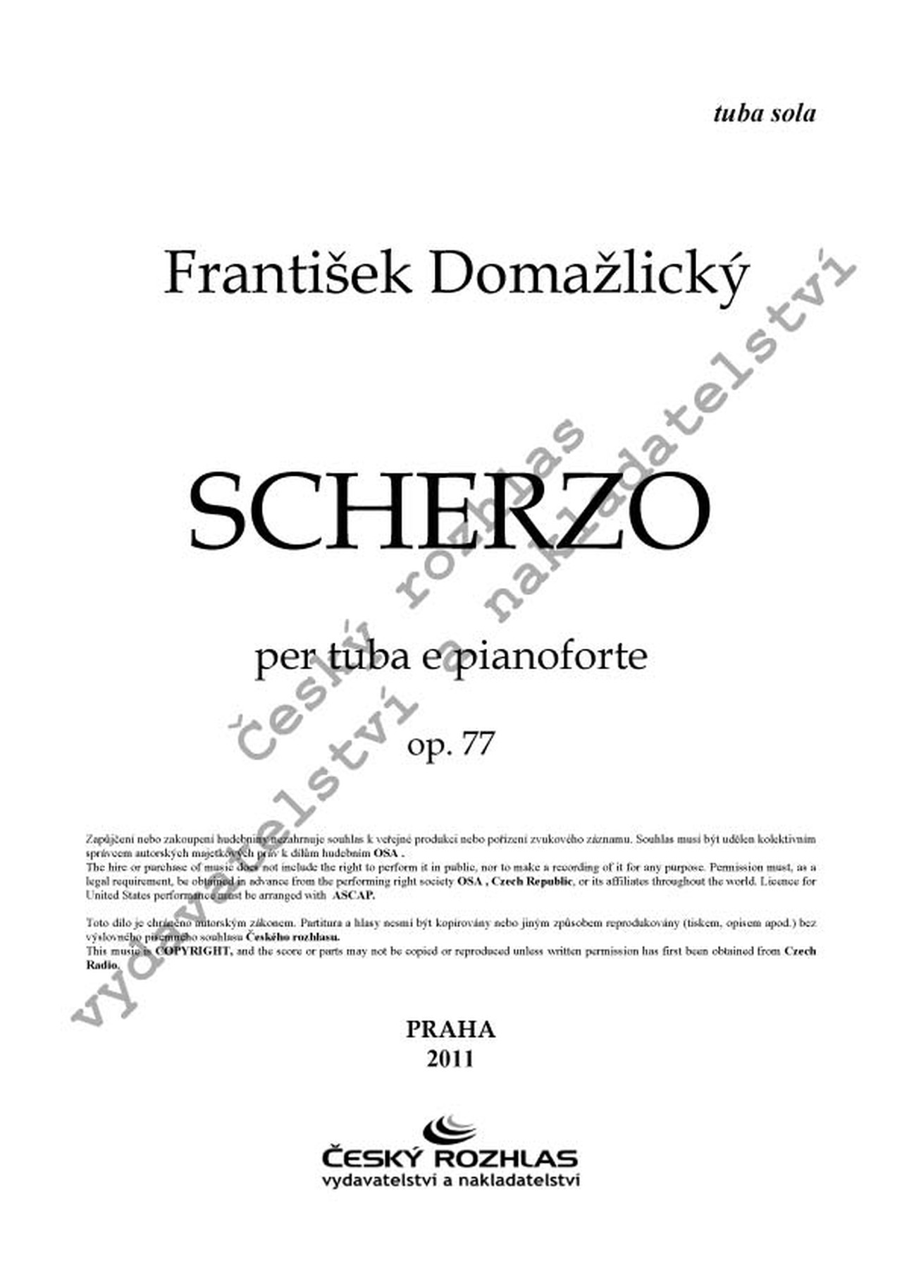 Do tubové literatury 20. století přispěl František Domažlický (1913 - 1997) čtyřmi kompozicemi. Po Koncertu pro tubu a smyčce, op. 53 (1983), Duetu pro dvě kontrabasové tuby, op. 53a (1983) a Sonatině pro tubu a klavír (1991) je chronologicky poslední skladbou Scherzo per Tuba ed pianoforte, op. 77 z roku 1992.