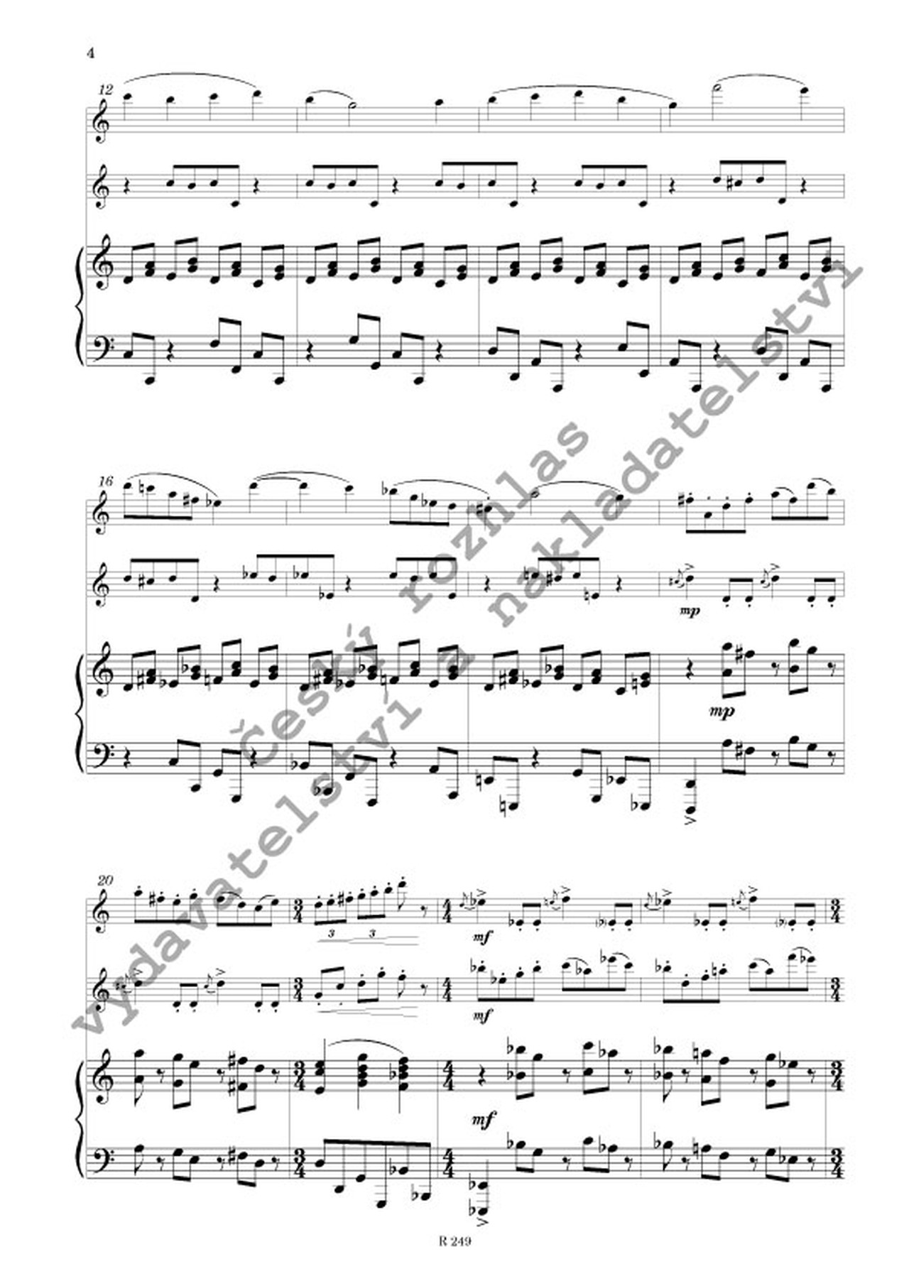 Premiérovala ji Novákova manželka Eliška u klavíru a dcera Clara na flétnu, na housle hrál v Ulmu žijící polský virtuoz Jerzy Nebel.