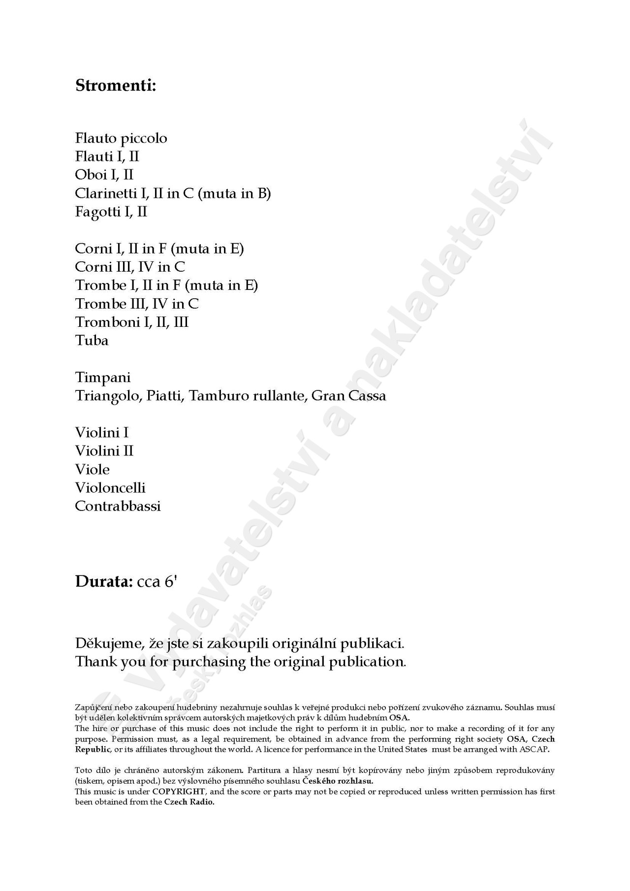 obsazení: fl picc, 2fl, 2ob, 2cl, 2fg, 4cor, 4trp, 3trb, tb, timp, trg, ptti, tamb rull, gc, archi