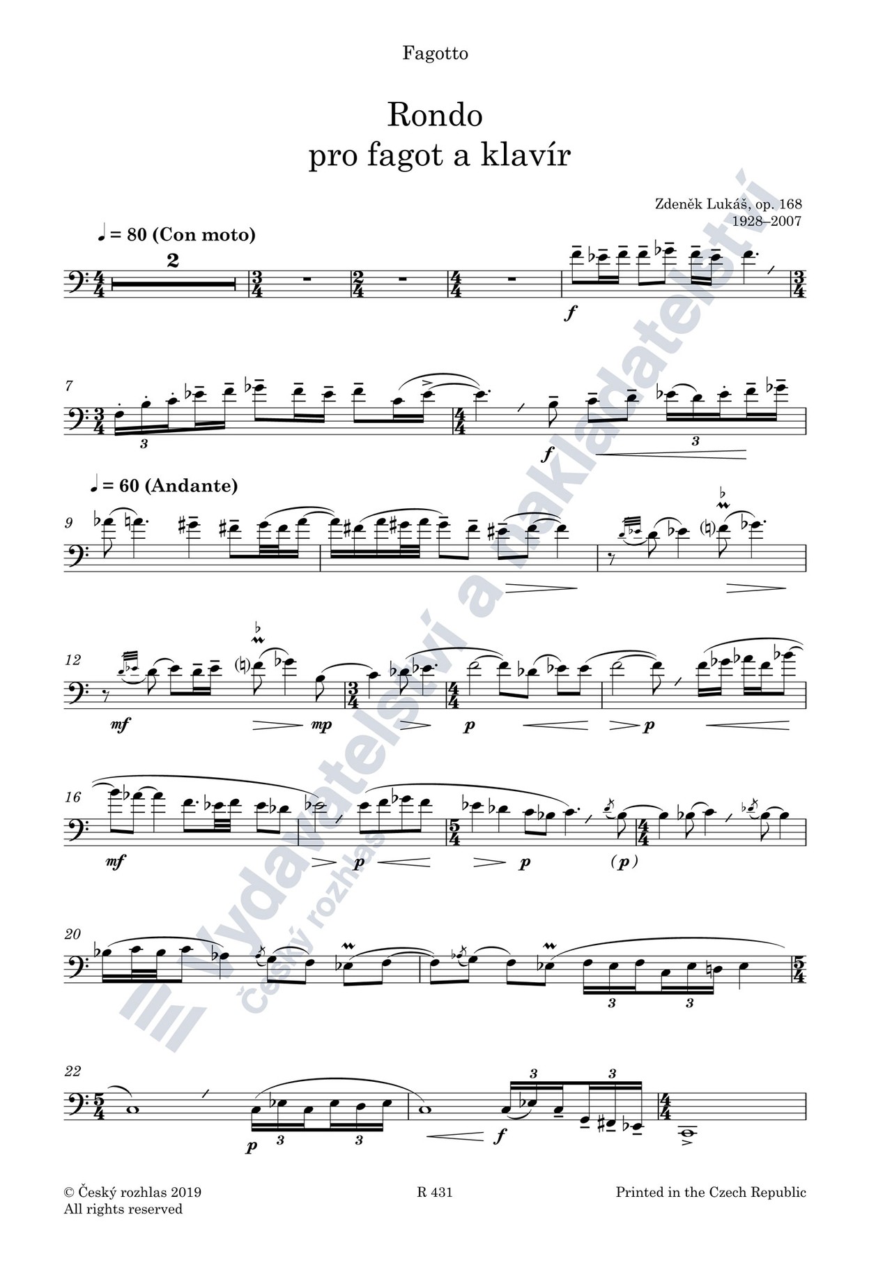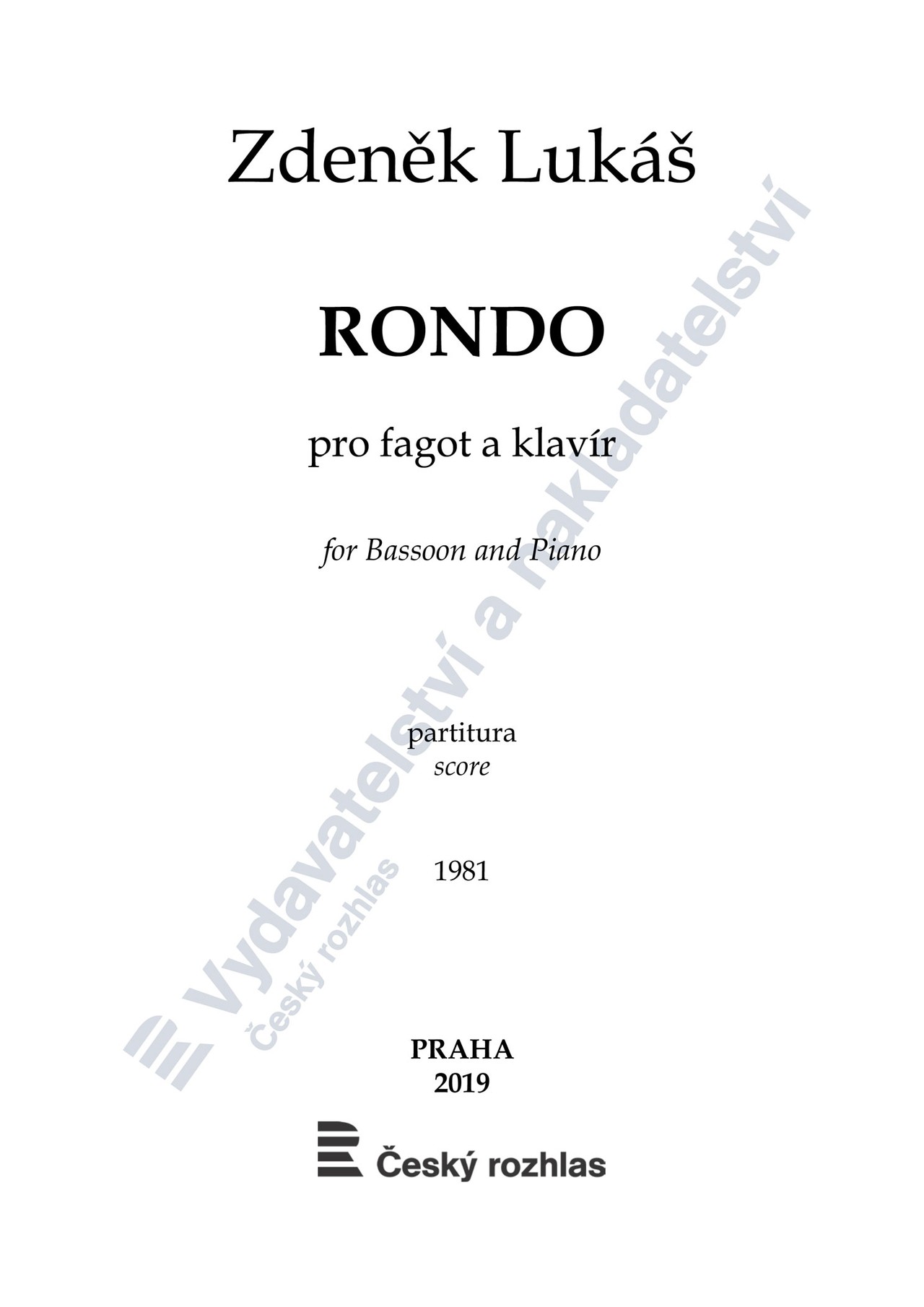 Zdeněk Lukáš: Rondo pro fagot a klavír, op. 168