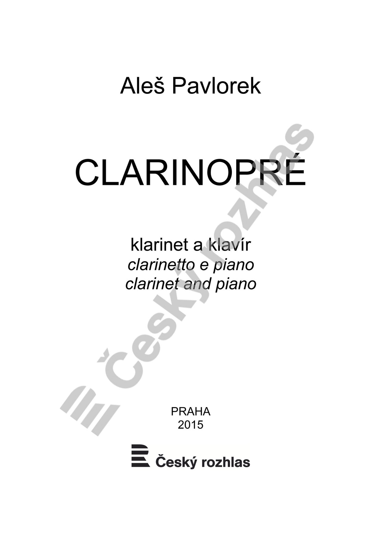ClarinoPré pro klarinet a klavír je zkomponována pro 67. ročník Mezinárodní hudební soutěže Pražské jaro 2015 v kategorii klarinet.