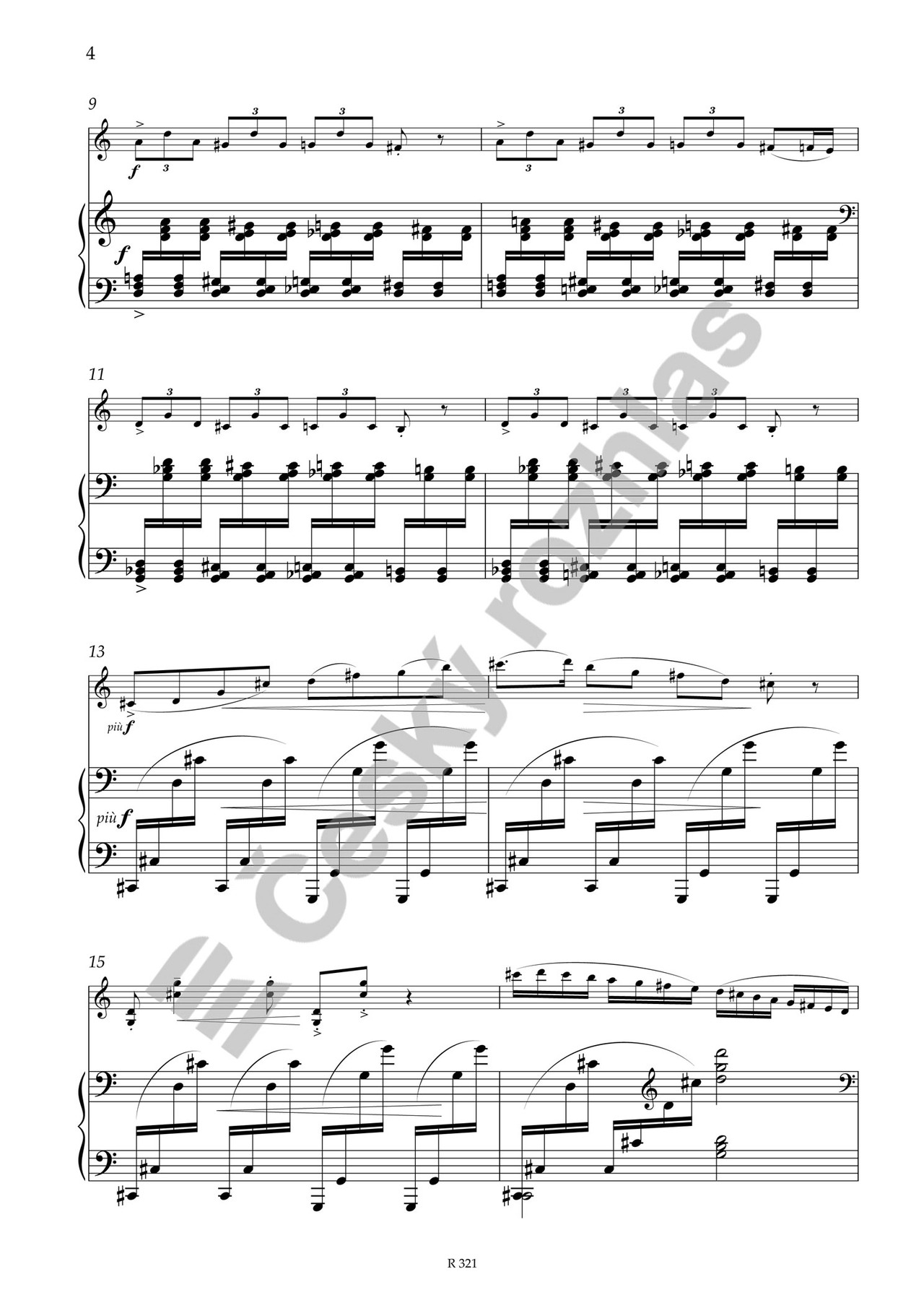Romantické kusy pro housle a klavír lze chápat jako tvůrčí aktualizaci romantického hudebního slohu z pohledu dnešního skladatele. Jde o pět skladeb, které tvoří kompoziční celek, lze je ale hrát též samostatně, či vybrat k provedení jen některé z nich.