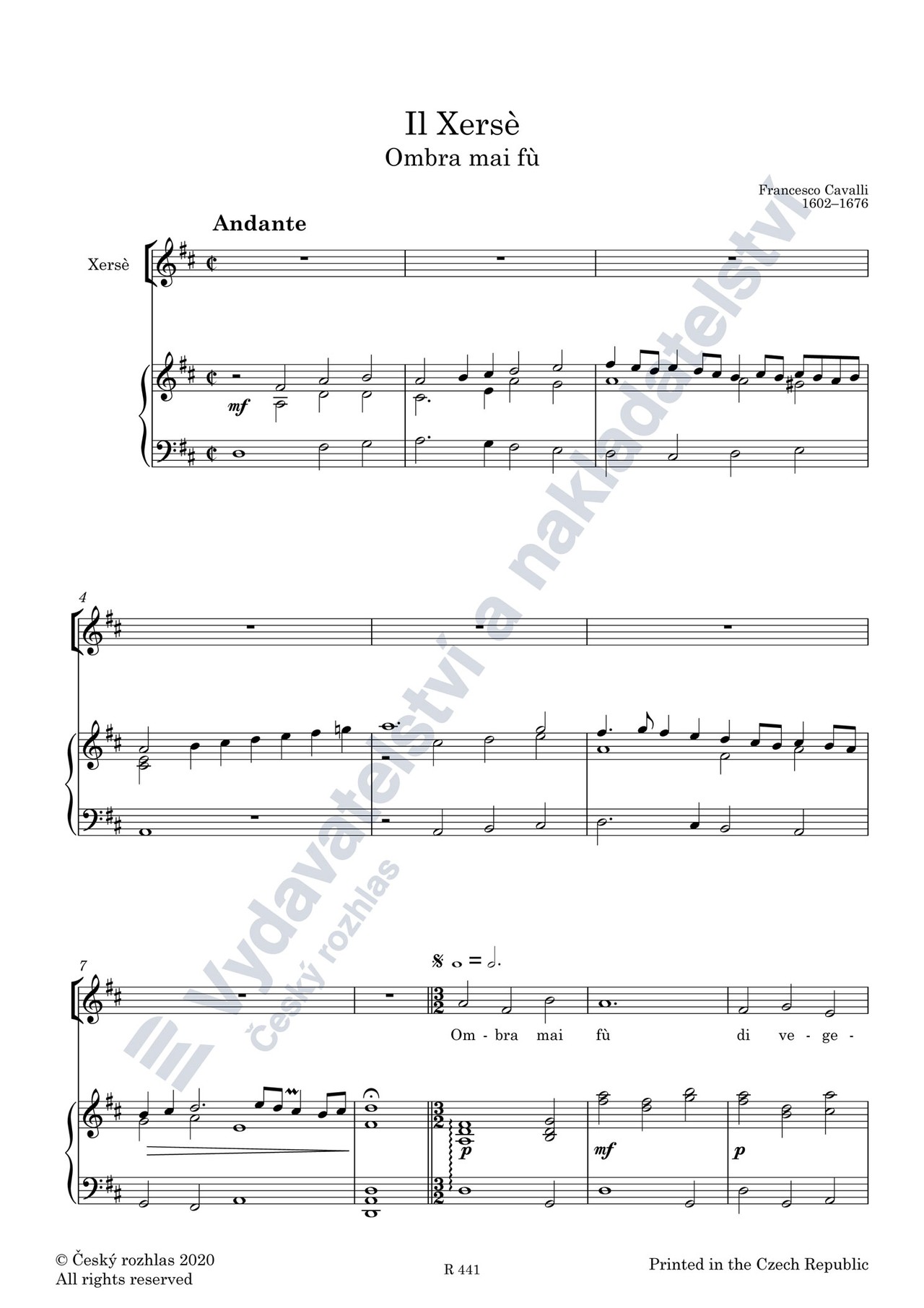 Francesco Cavalli (1602–1676) byl již ve čtrnácti letech přijat Monteverdim do sboru baziliky sv. Marka v Benátkách, šel ve stopách svého mistra na poli operním – napsal 42 oper (v Benátkách bylo v první půli 17. století 18 operních divadel při tehdejších 140 000 obyvatelích tohoto města). Byl prvním, kdo zhudebnil libreto „Xersè“ (Nicolò Minato), které později upravil Silvio Stampiglia pro Bononciniho (Řím 1694), použil je i Händel (Londýn 1738).