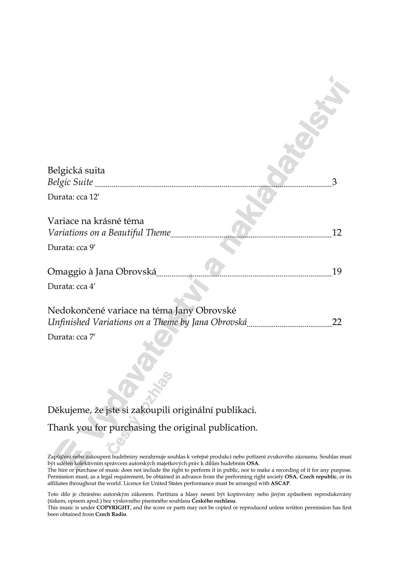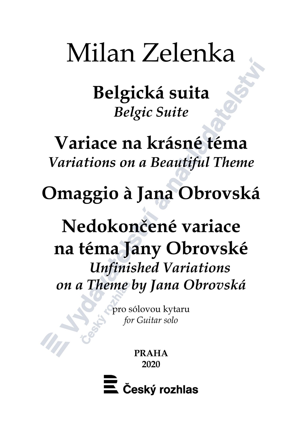 Milan Zelenka: Belgická suita, Variace na krásné téma, Omaggio à Jana Obrovská, Nedokončené variace na téma Jany Obrovské