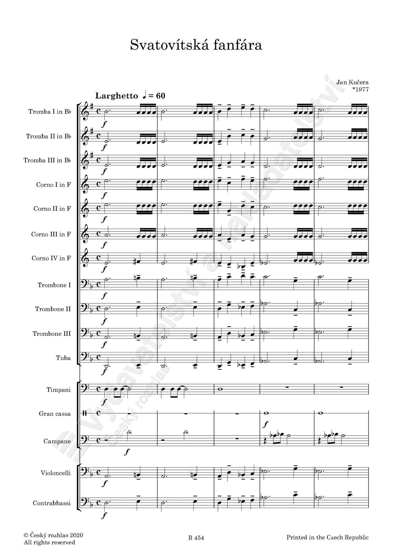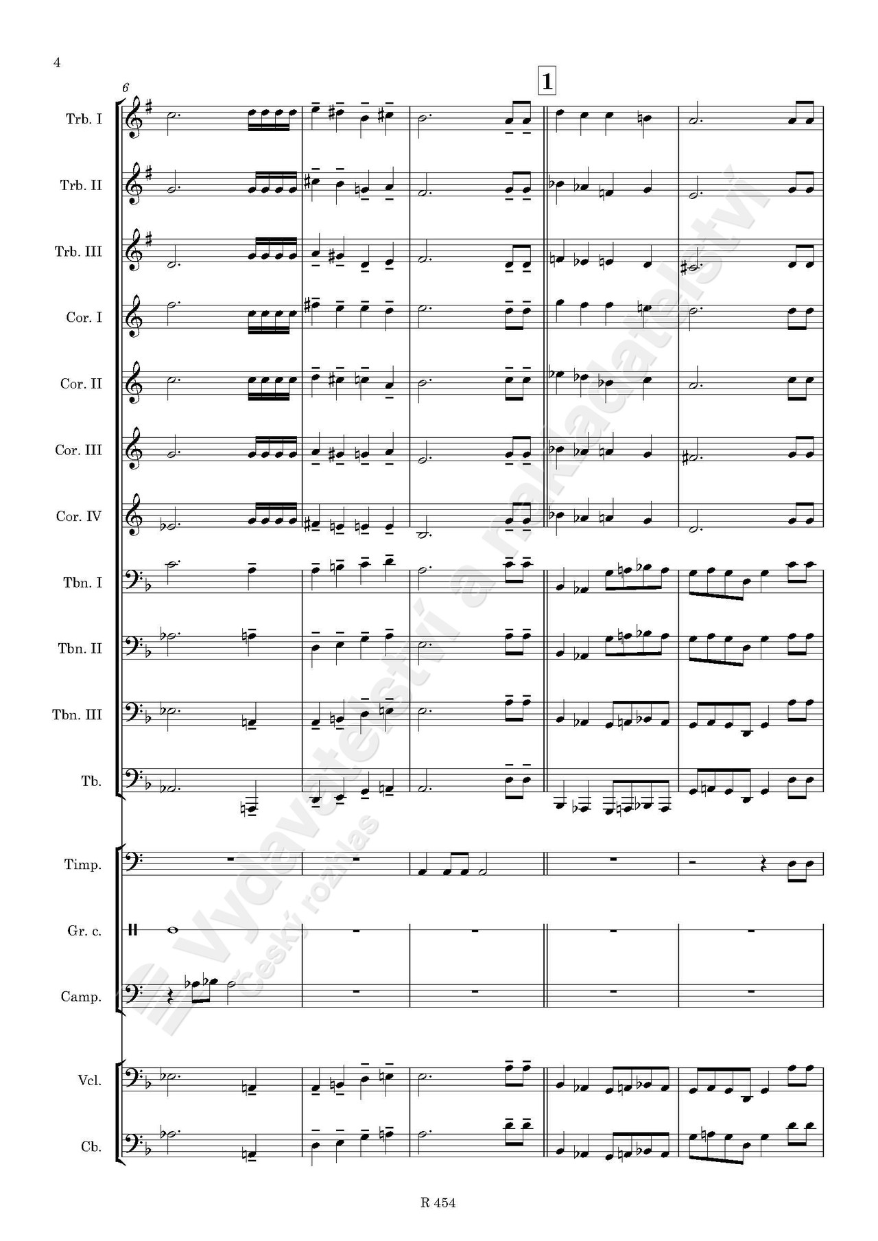 obsazení: trb I, trb II, trb III, cor I, cor II, cor III, cor IV, tbn I, tbn II, tbn III, tb, timp, 2xperc, 4xvcl, 2xcb