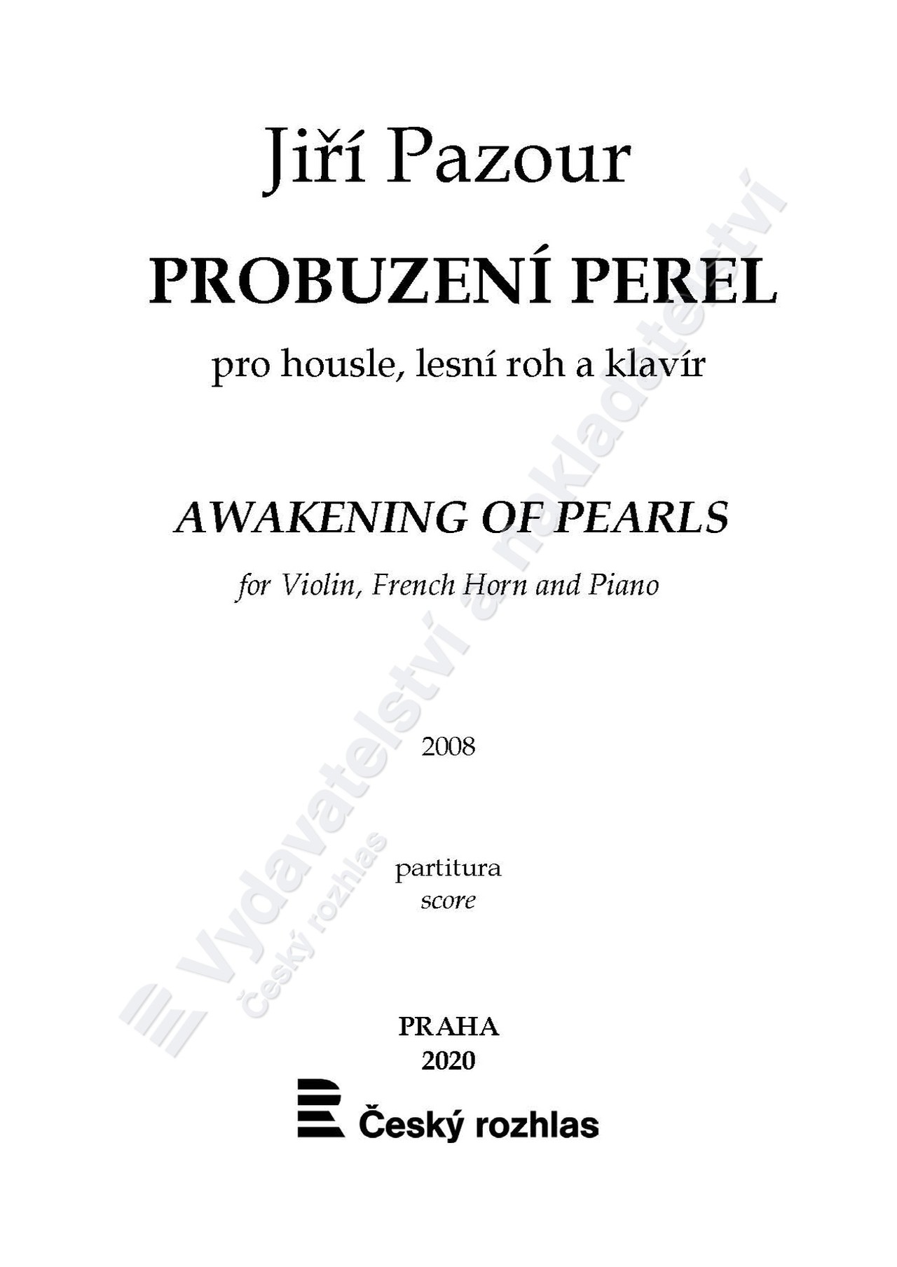Dvojdílná kompozice Probuzení perel vznikla v letech 2004–2008 na objednávku českého komorního souboru Brahms Trio Prague. Původně dvě samostatné skladby (Jiné časy a Probuzení perel) autor později spojil do jednoho hudebního celku. Myšlenkově se jedná o lyrický hudební obraz o dvou částech, který, stejně jako řada dalších skladeb Jiřího Pazoura, má svůj vlastní posluchačům skrytý děj a vychází z autorových osobních prožitků a pohledů na svět.