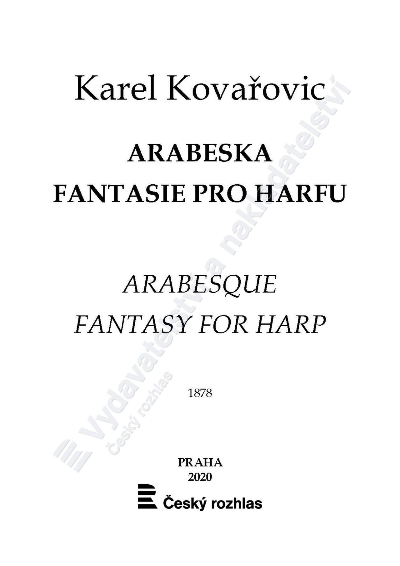 Z tohoto roku pochází i zde publikovaná Fantasie pro harfu, která odráží v 19. století oblíbený typ sólového kusu demonstrujícího interpretovu technickou brilanci. Arabeska pro harfu je součástí cyklu s původním německým názvem Bagatellen für Harfe (Bagately pro harfu). Ten obsahuje osm drobných skladbiček v lehčím slohu označených poetickými názvy: Schlummerlied (Ukolébavka), Am Spinnrad (U kolovrátku), Wiegenlied (Ukolébavka), Waldesrauschen (Šumění lesa), Arabeske (Arabeska), Lied ohne Worte (Píseň beze slov), Bächlein’s Rauschen (Šumění potůčku) a Barcarolle (Barkarola). Cyklus pravděpodobně shrnuje dohromady Kovařovicovy drobnější harfové kompozice z let 1878–1886. Po hudební stránce prozrazují tyto náladové kusy ohlasy Schumannovy a Fibichovy tvorby.