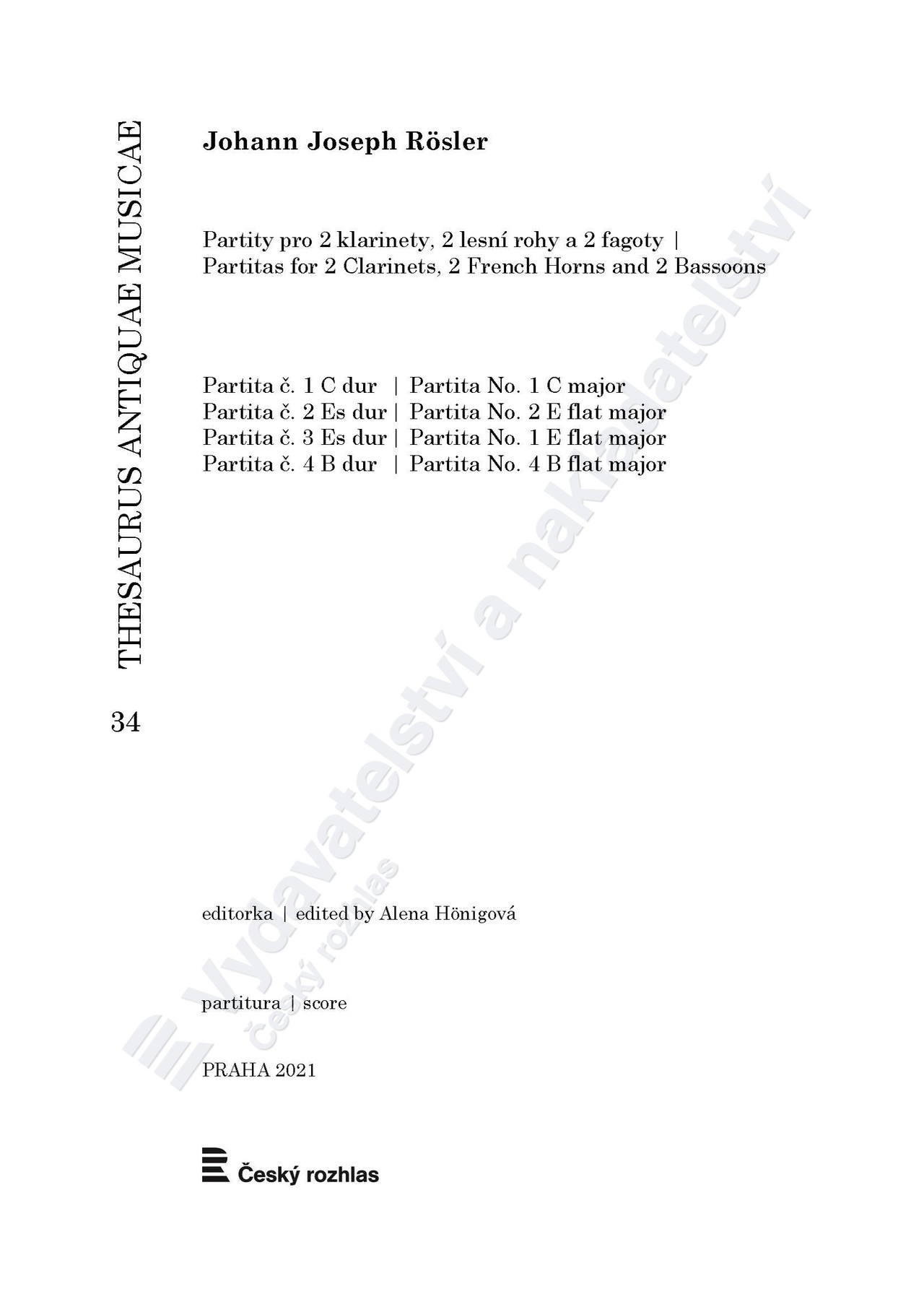 Johann Joseph Rösler: Partity pro 2 klarinety, 2 lesní rohy a 2 fagoty (ed. Alena Hönigová)