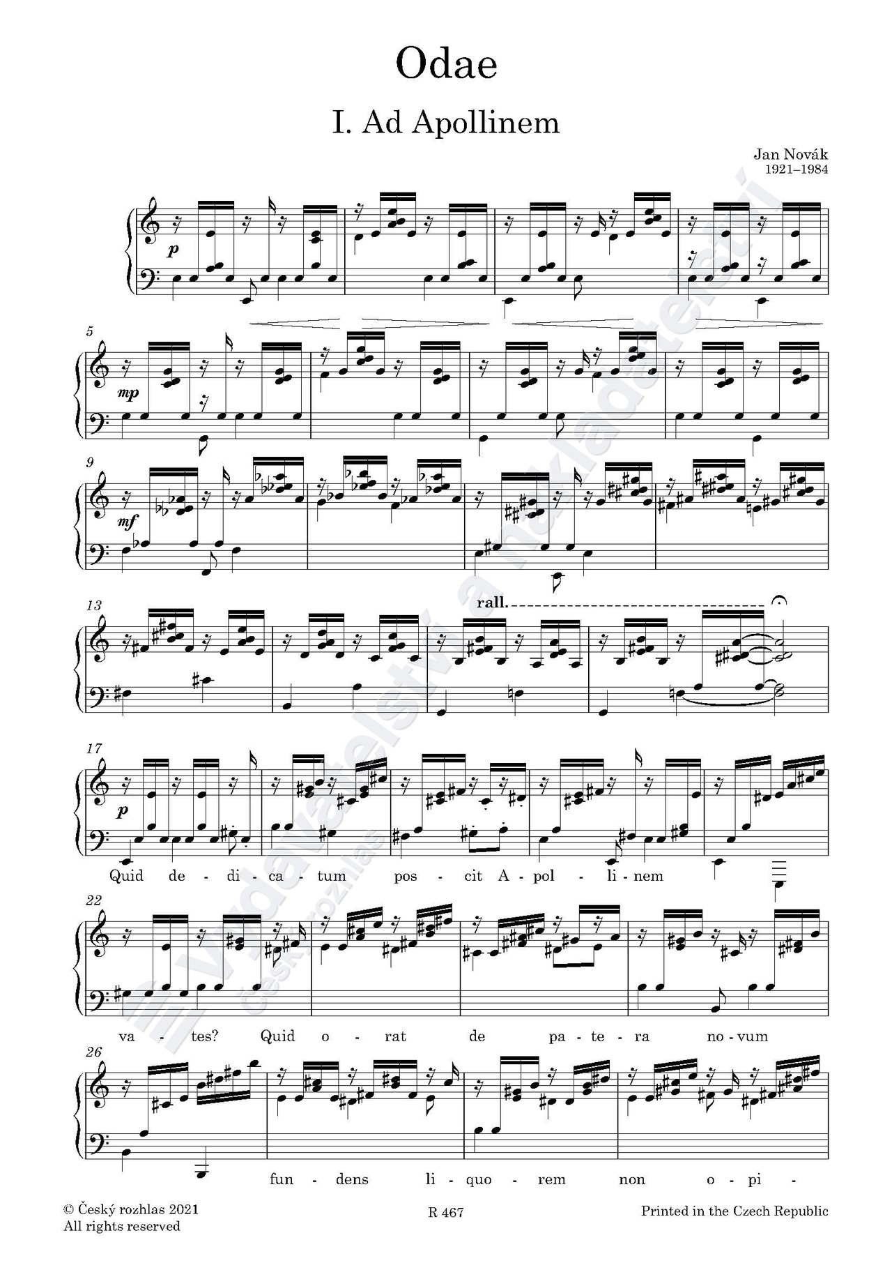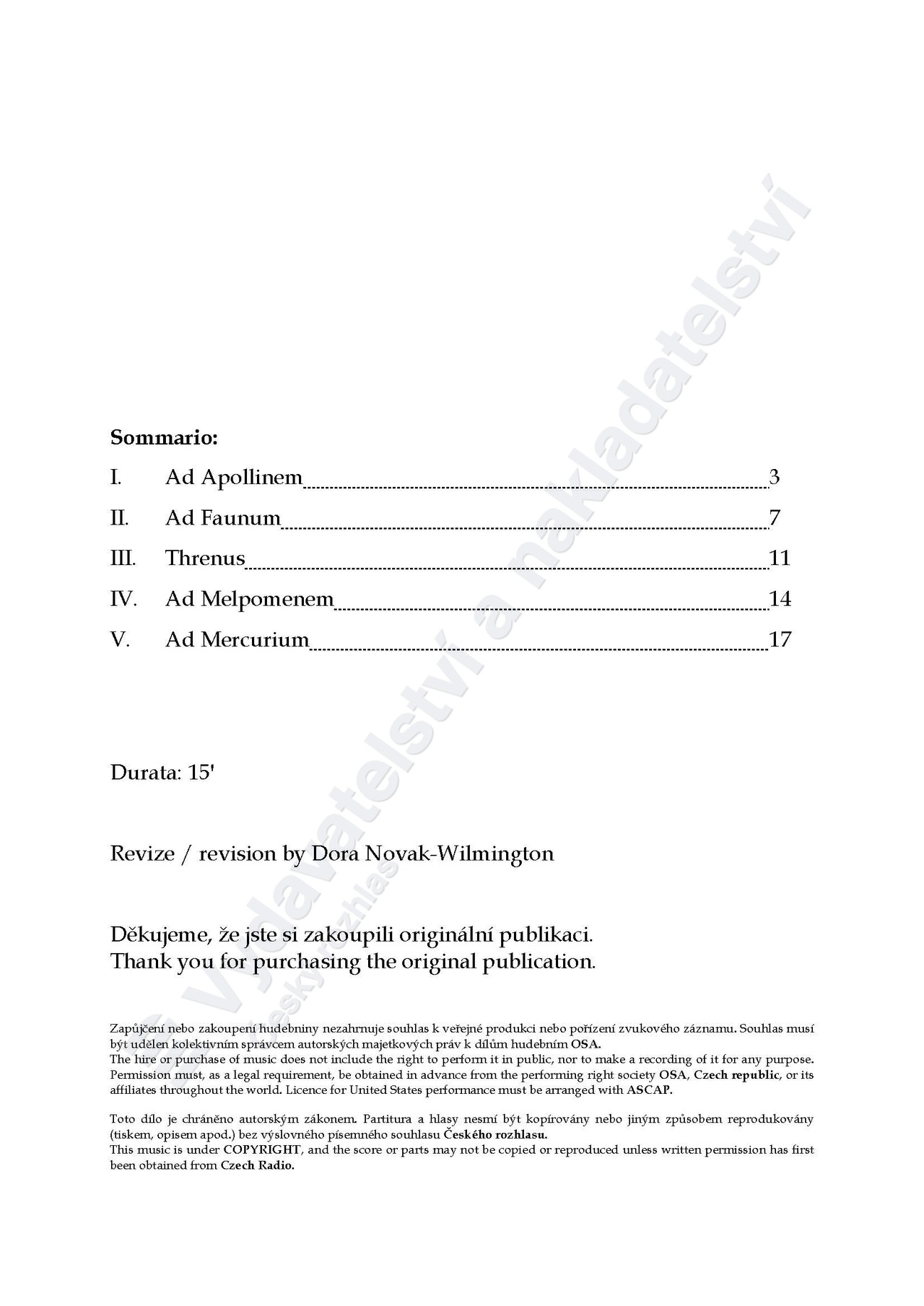 Jednotlivé věty zde jedinečně zachycují básnický děj zachováním latinské metriky v hudebním rytmu a celkovým zvukovým zabarvením. Klavír se mění ve vznešenou Apollonovu kitharu, Faunovu bezstarostnou flétnu či šum vybájených hájů. Živě si můžeme představit mihotající se křídla bájného posla bohů Merkura v páté větě, zatímco v hravé větě druhé prchají nymfy před milovníkem Faunem za vysokých zvuků jeho flétny. Kontrastem je prostřední věta Threnus (neboli nápis na náhrobku – epitaf), opěvující vznešenost ducha, nekompromisní loajalitu, smysl pro spravedlnost a pro pravdu zbavenou všech příkras.