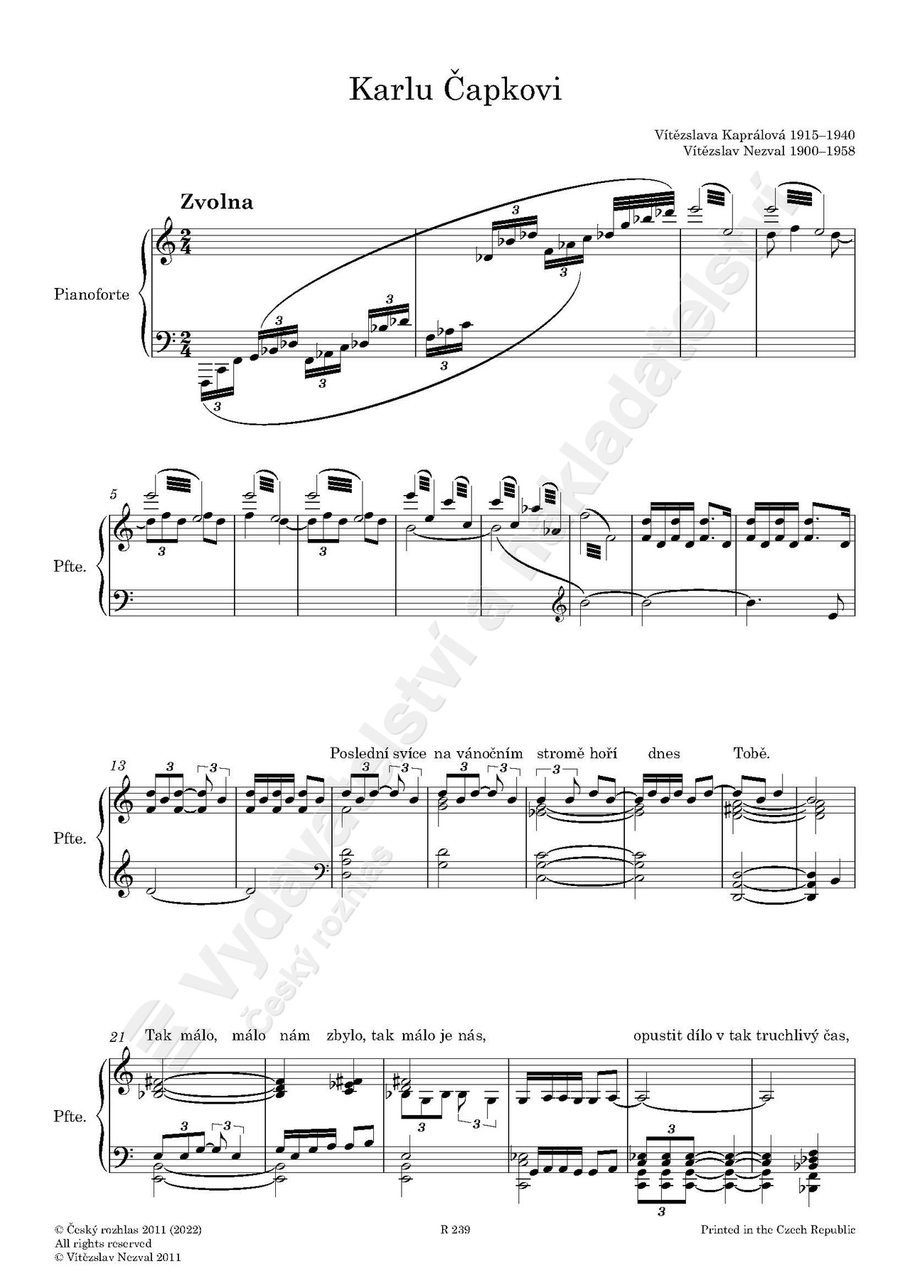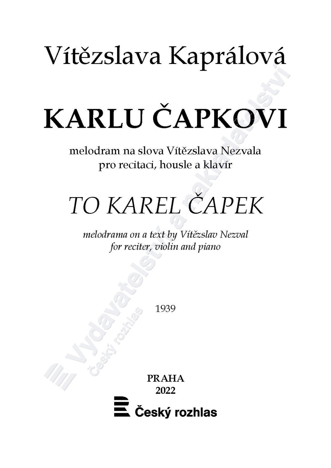 Vítězslava Kaprálová: Karlu Čapkovi (melodram na slova Vítězslava Nezvala)