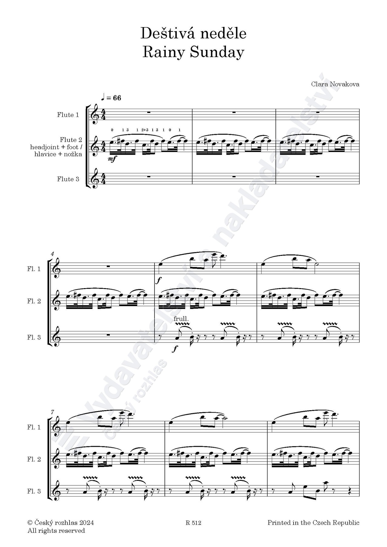„Snažila jsem se použít pouze základní soudobé flétnové techniky: frullato, flažolety, pizzicato, zvuk klapek a kombinace s hlasem. Netradiční je použití hlavice spojené přímo s nožkou (Deštivá neděle) a hraní pouze na samotnou hlavici (Maestoso), přičemž se používá dlaň na zavření hlavice, a vkládáním prstu dovnitř a ven z hlavice se docílí efektu glissanda.“