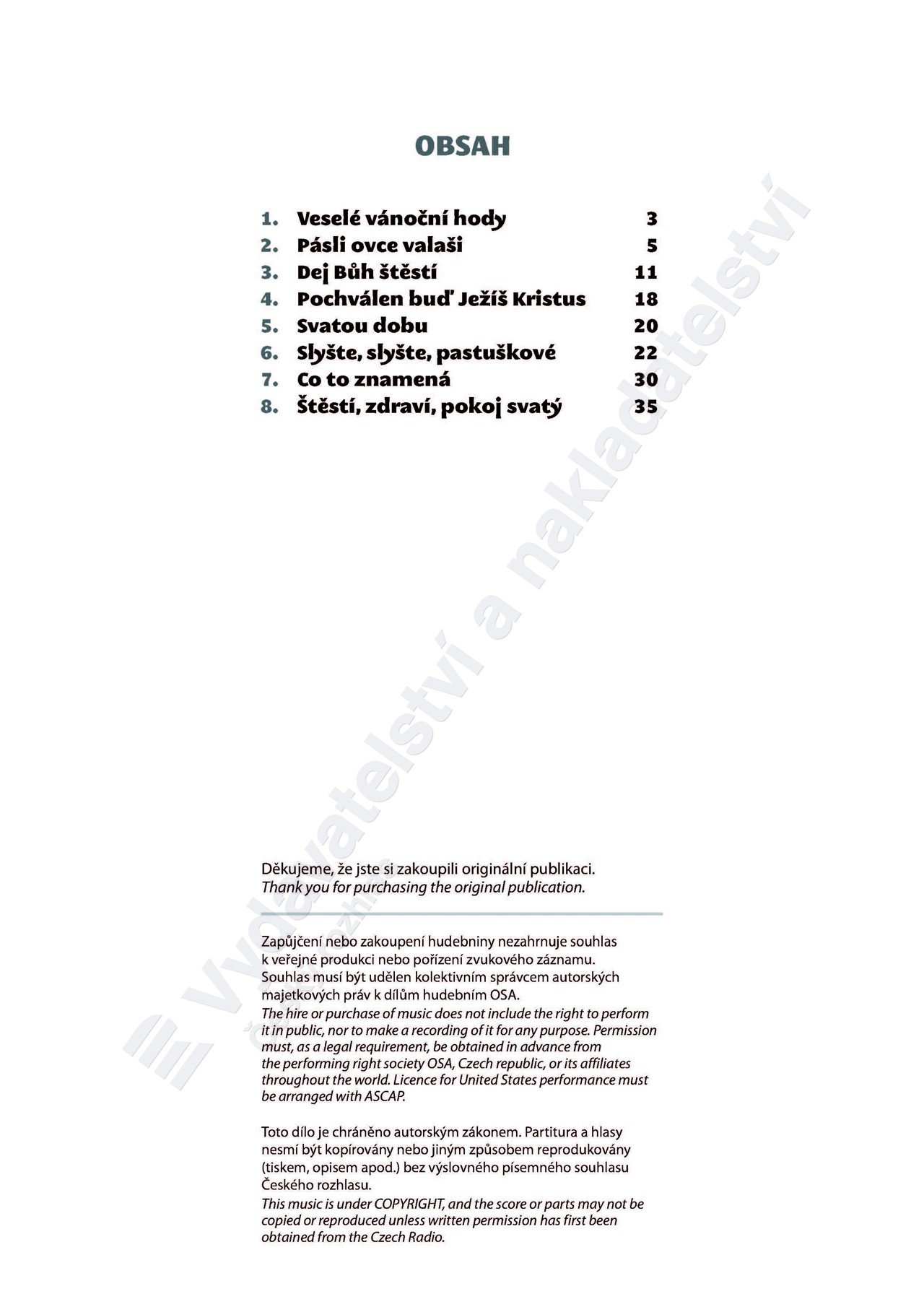 instrumentace pro jazzový kvartet (flétna, piano, basa, bicí) a sbor. V tomto vydání jsou obsaženy všechny nástroje původní instrumentace doplněné o sopránový saxofon. Instrumentace je