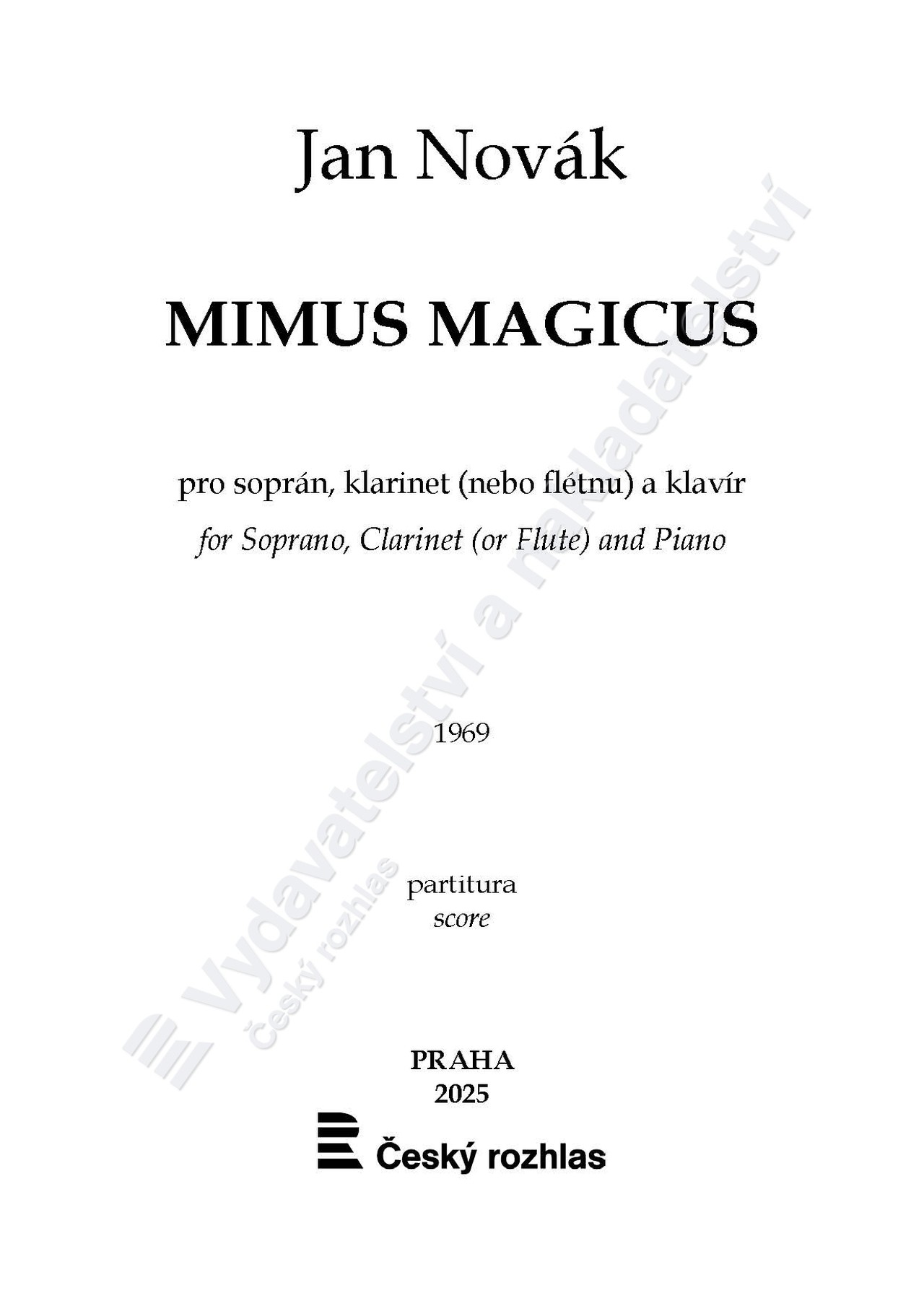 Jan Novák: Mimus magicus pro soprán, klarinet (nebo flétnu) a klavír