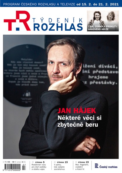 Tváří nového Týdeníku Rozhlas, který vychází v pondělí 8. února, je herec Jan Hájek. V titulním interview vypráví o úskalích své profese i o představení Serotonin podle předlohy kontroverzního Michela Houellebecqa. Dočtete se také o jiné slavné knize, Matka Noc od Kurta Vonneguta, z níž se bude číst na pokračování na stanici Vltava. A s Ivanem Motýlem se přenesete do února roku 1929, kdy v Čechách udeřila tisíciletá zima.