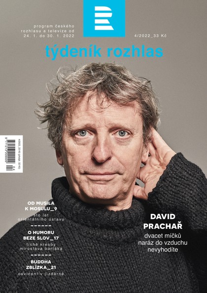 Tváří nového čísla časopisu je herec David Prachař, který v titulním rozhovoru vypráví o svých dvou vášních – k divadlu a k fotbalové Slavii. Vypravíte se na mimořádnou výstavu Buddha zblízka v pražské Valdštejnské jízdárně a přečtete si o novém rozhlasovém seriálu podle románu nobelistky Olgy Tokarczukové Svůj vůz i pluh veď přes kosti mrtvých. Týdeník Rozhlas vychází v pondělí 17. ledna.